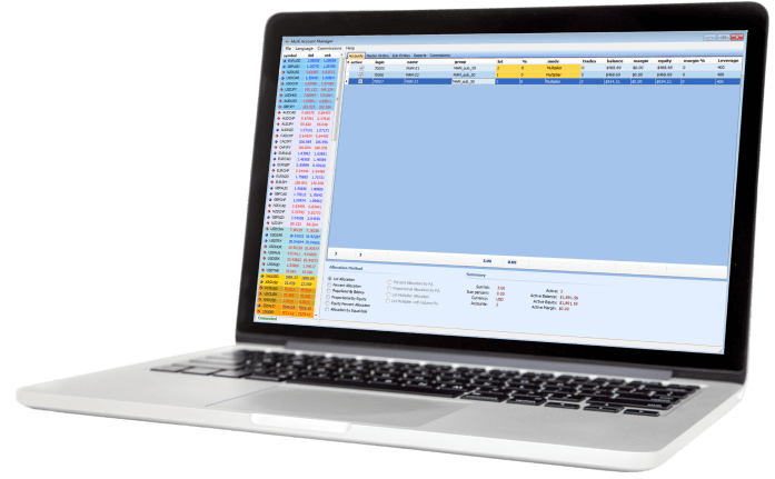 MAM账户通常由专业交易者或资金管理者使用,以同时管理多个交易账户。交易员可以一键交易所有子账户,交易会根据每个账户的大小按比例分配。