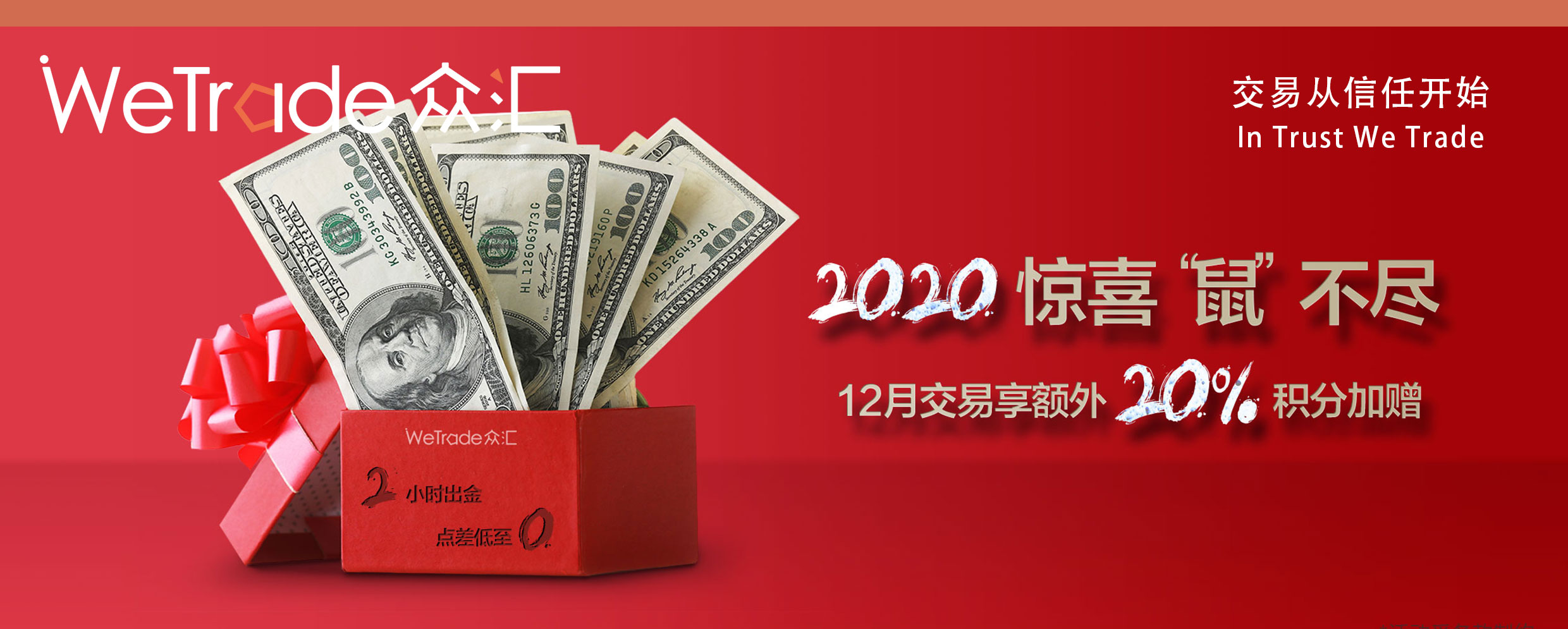 活动内容:2019年12月当月累计入金超过2020美金的客户,交易享额外20%积分加赠